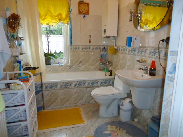 Die Immobilie befindet sich in sehr gutem Zustand. In allen Wohnräumen ist gepflegter Parkettboden verlegt, die Wände sind frisch gestrichen. Küche und Badezimmer sind mit Fliesen und Terrakotta ausgestattet. Die Beheizung erfolgt mit einem Gasheizkessel, Warmwasser über Durchlauferhitzer. Kunststofffenster mit Isolierverglasung sorgen für gute Energieeffizienz.