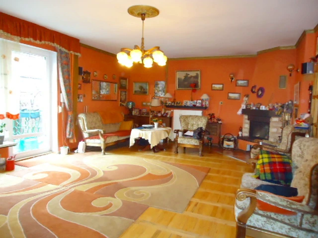 - Großzügiger Wohnbereich (ca. 40 m²) mit Kamin und Zugang zum Balkon