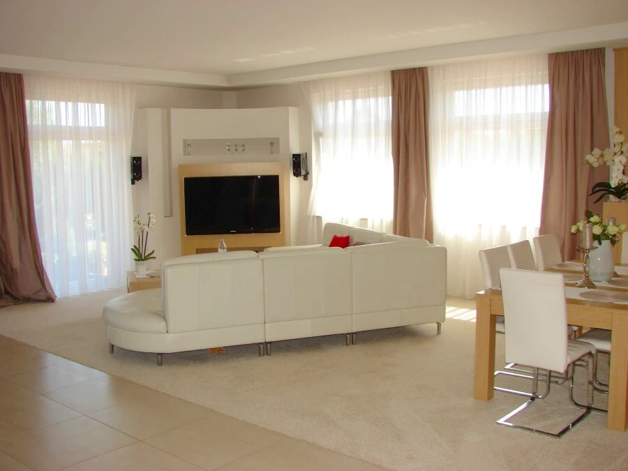 Das im Jahr 2008 erbaute Haus (Nutzfläche ca. 200 m²) beeindruckt durch eine klare Raumaufteilung und hochwertige Ausführung. Im Zentrum des Hauses befindet sich ein großzügiger, lichtdurchfluteter Wohn- und Essbereich mit offen gestalteter Küche und direktem Zugang zur sonnigen Terrasse – ideal für entspannte Stunden im Freien.