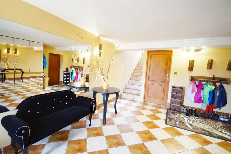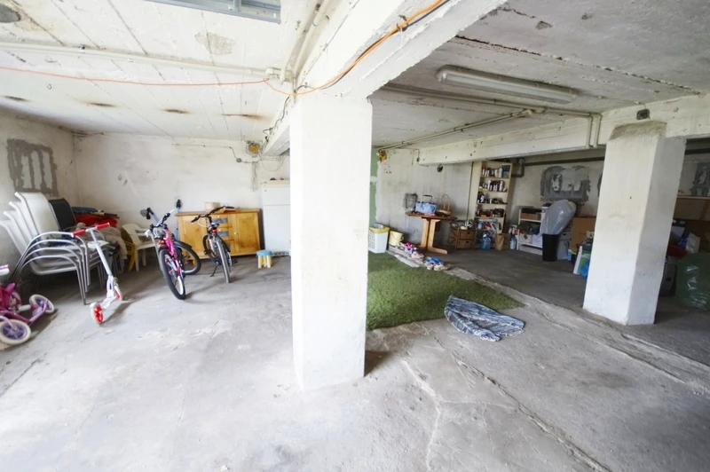 Im Erdgeschoss finden Sie einen integrierten Doppelgarage (ca. 51,85 m²) sowie einen großen, offenen Wirtschaftsraum. Auf dem Grundstück befindet sich darüber hinaus ein weiteres Gebäude mit ca. 162 m² Nutzfläche, das sich hervorragend als Garage, Lager oder zur Ausübung einer gewerblichen Tätigkeit eignet.