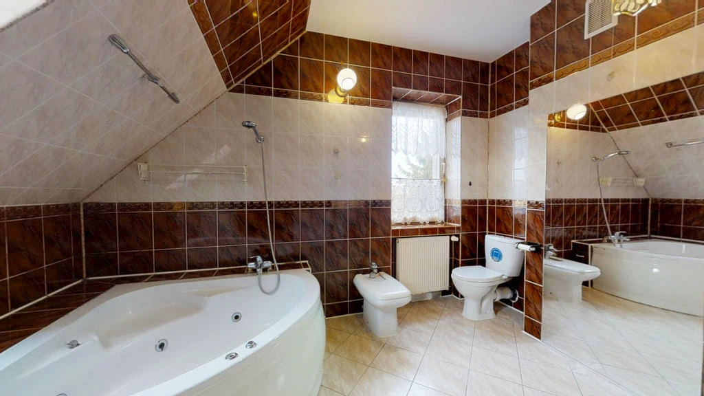 Obergeschoss: - Drei große Schlafzimmer - Wellnessbad mit Eckbadewanne, Bidet und WC - Flur mit Zugang zu allen Räumen