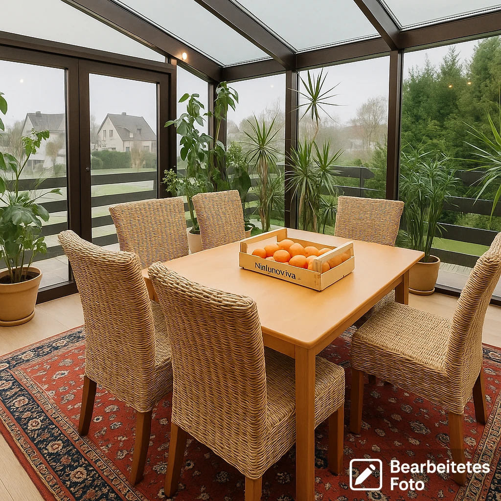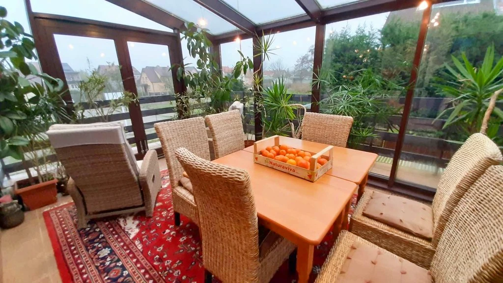 - Essbereich mit Zugang zum warmen Wintergarten – ein perfekter Ort zum Entspannen oder für Familienfeiern