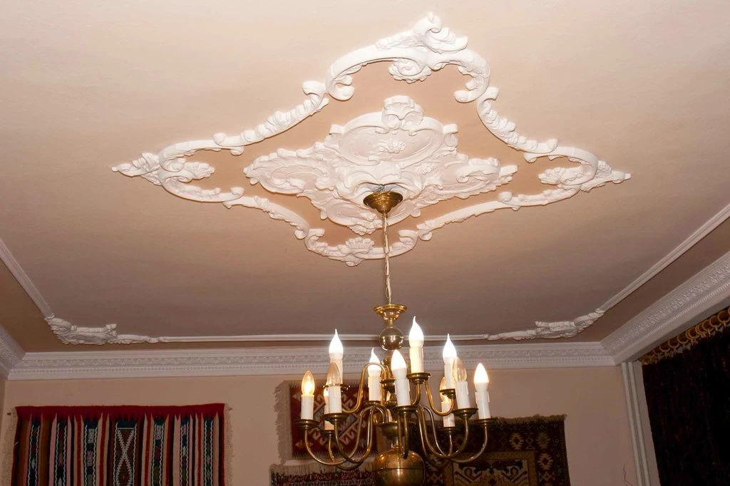 - Decken mit Alabastergips-Stuck im Wohnzimmer und Essbereich