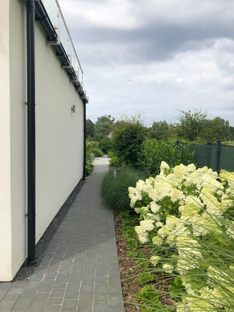 Der liebevoll gestaltete und bepflanzte Garten mit automatischer Bewässerungsanlage lädt zum Entspannen ein. Ein großzügiger, noch individuell zu gestaltender Terrassenbereich sowie eine breite Auffahrt vor dem Haus sorgen für zusätzlichen Komfort. Das Grundstück ist durch eine 5 m breite Einfahrtstor zugänglich.