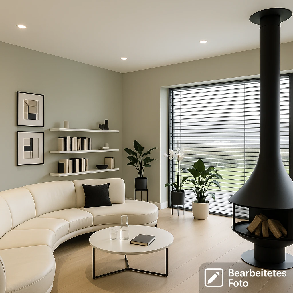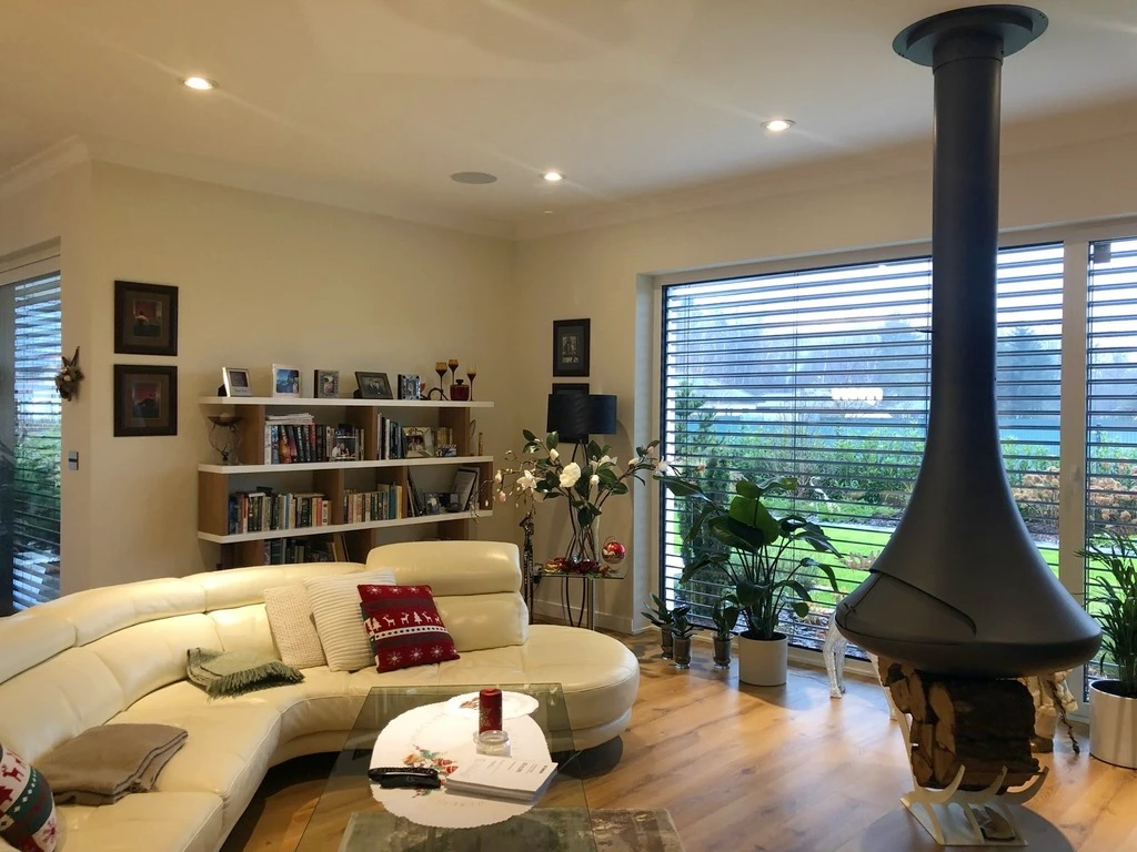 - Stilvoller, hängender Kamin im Wohnzimmer von Stroger