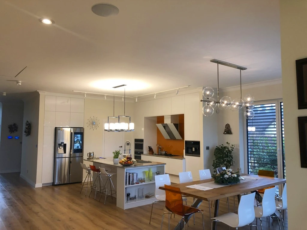 - Installiertes Lautsprechersystem im ganzen Haus sowie integrierte Lautsprecher und Radio von Gira im Badezimmer