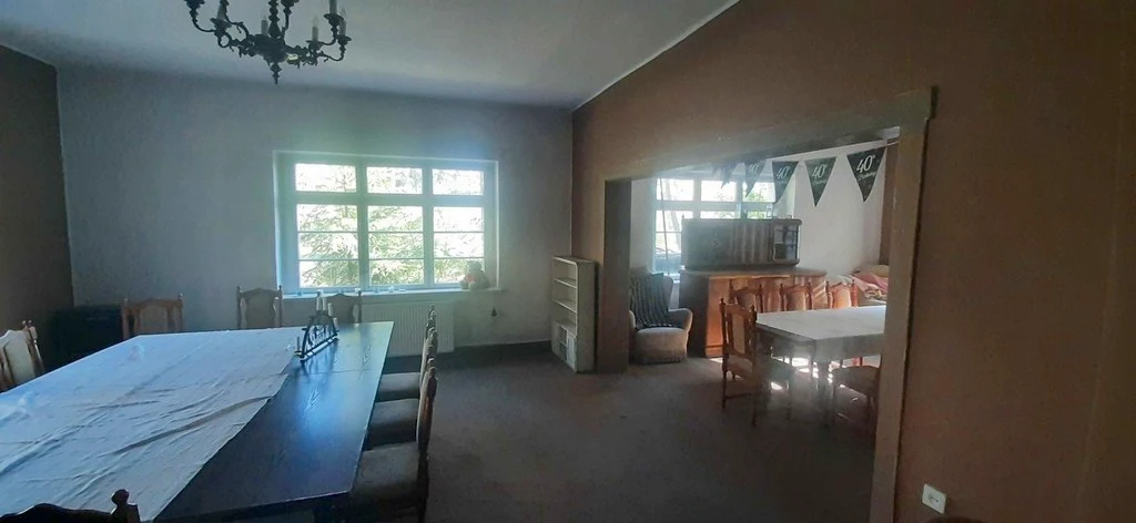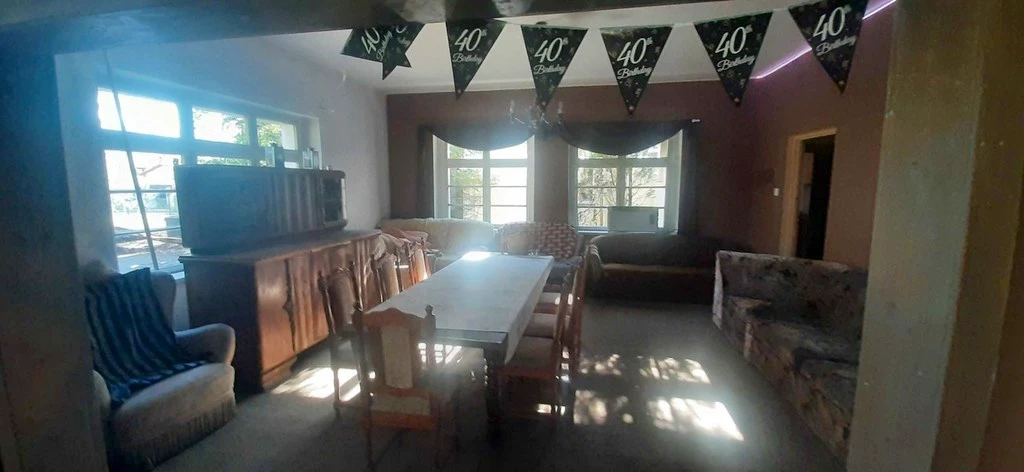 Auf dem Grundstück befindet sich ein freistehendes Gebäude aus dem Jahr 1920 mit einer Gesamtfläche von ca. 380 m² (Nutzfläche ca. 300 m²). Früher diente es als Veranstaltungsort für private Feiern und Events – heute bietet es Raum für neue Ideen. Die Bausubstanz besteht aus Ziegelmauerwerk, das Gebäude ist unterkellert und bedarf einer grundlegenden Renovierung.
