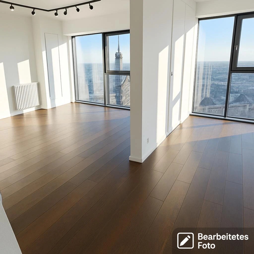 Das Apartment besticht durch seine moderne Aufteilung sowie seine Ausstattung mit hochwertigen Materialien. Die Bodentiefe Panoramafenster durchfluten die Räume mit Tageslicht und bieten einen atemberaubenden Blick über die Skyline von Stettin.