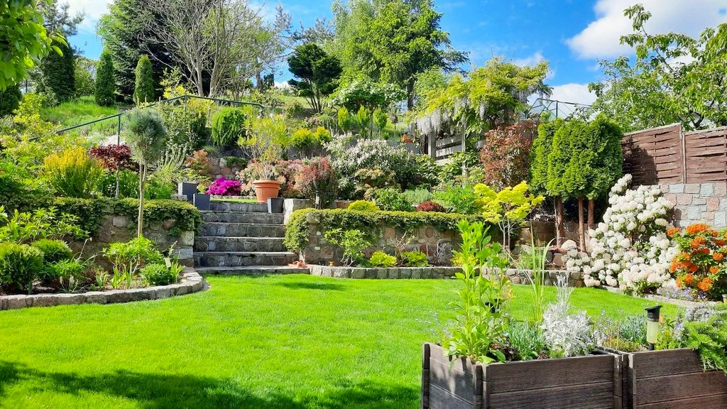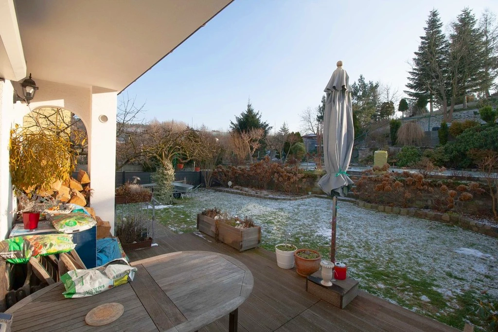 Der stilvoll angelegte, mehrstufige Garten ist eine grüne Oase: mit vielfältigem Pflanzenbewuchs, einem ausgebauten Bewässerungssystem und einem separaten Gemüsegarten. Für entspannte Stunden sorgt eine großzügige Freiluftsauna in einem isolierten Pavillon – verglast mit Blick ins Grüne, aber gleichzeitig sichtgeschützt und privat.
