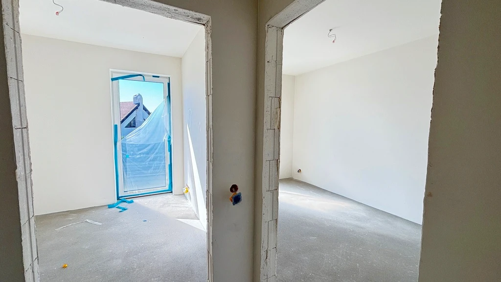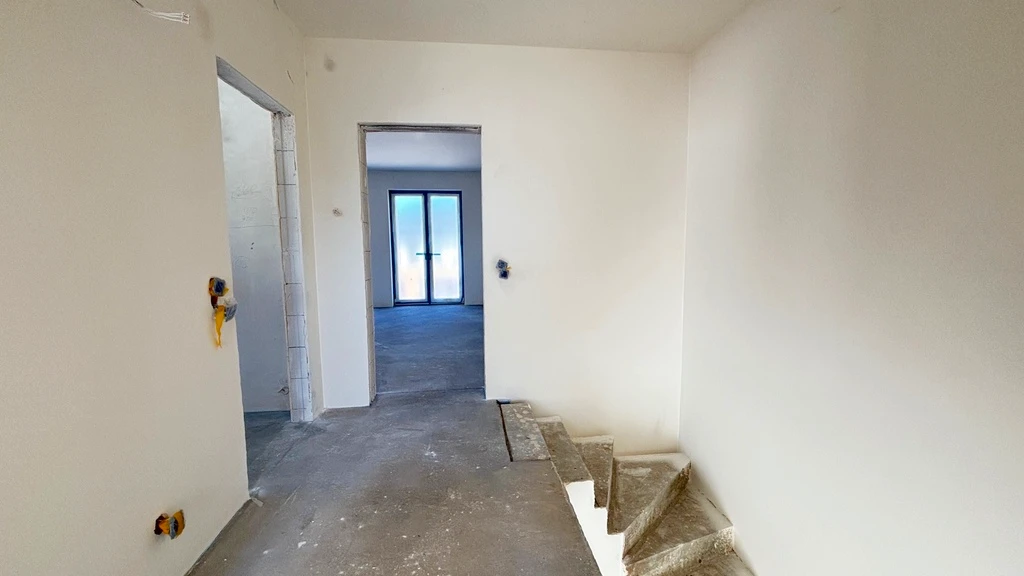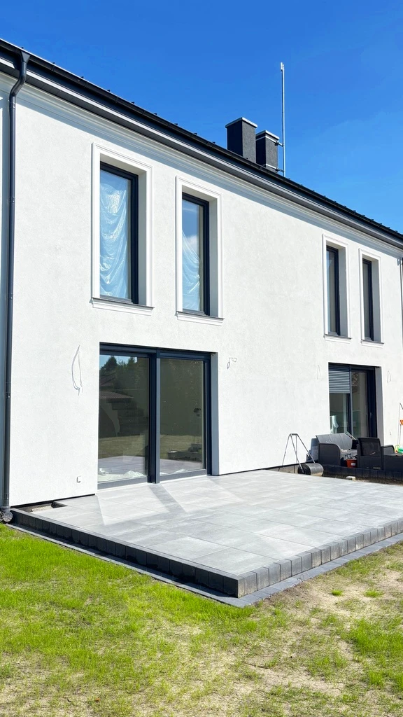 Das Haus ist Teil eines modernen Projekts mit zwei Einfamilienhäusern, die jeweils zwei Wohneinheiten beinhalten. Die Übergabe erfolgt im Dezember 2024 im gehobenen Entwicklerstandard – inklusive erschlossenem Dachboden.