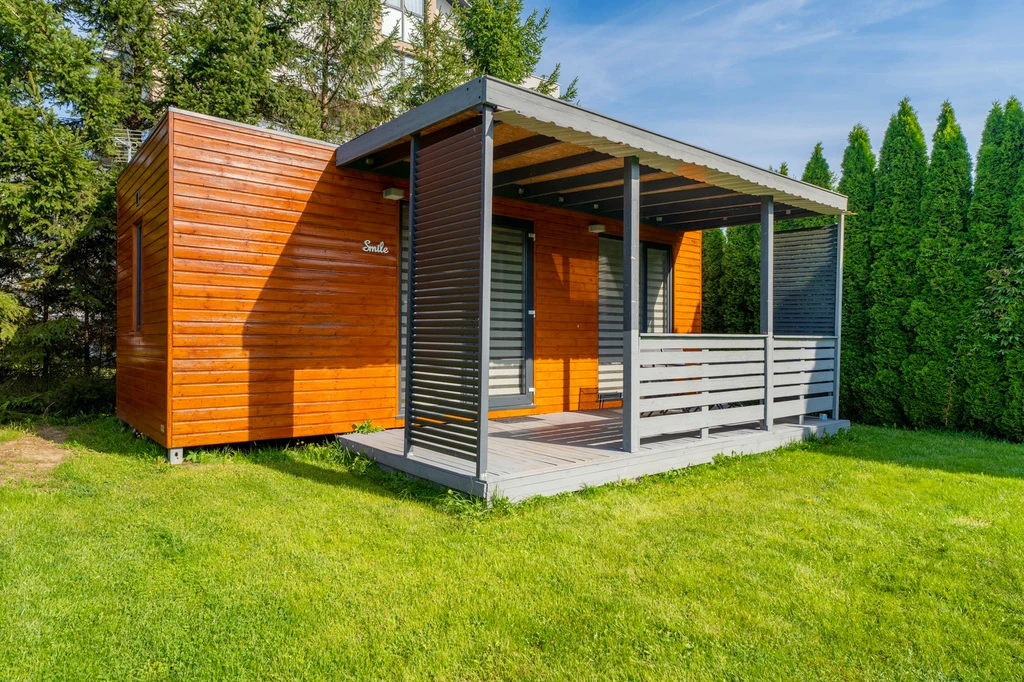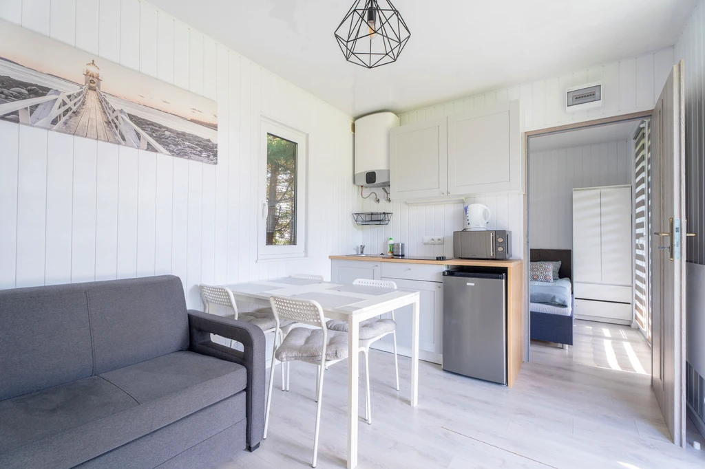 Ein Teil des Angebots umfasst zwei zusätzliche Ferienhäuser à je 25 m². Eine beispielhafte Umrechnungsangabe für Investitionsentscheidungen: €10.000 (PLN 42.500).