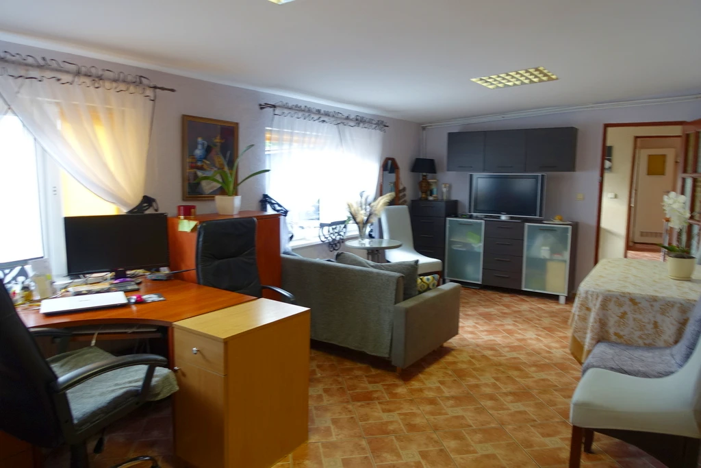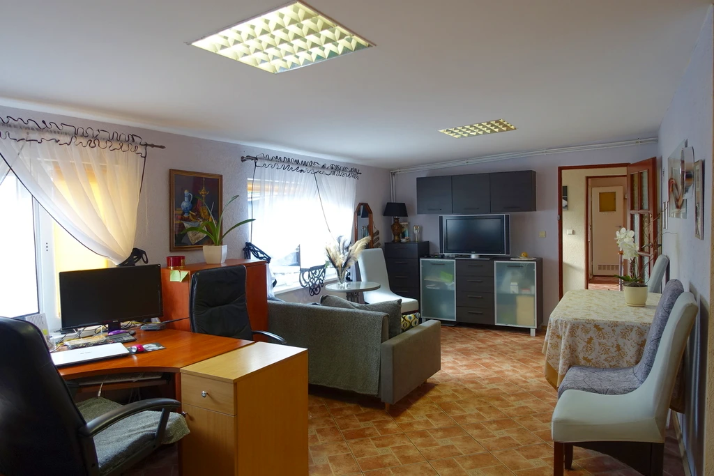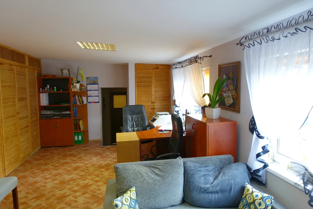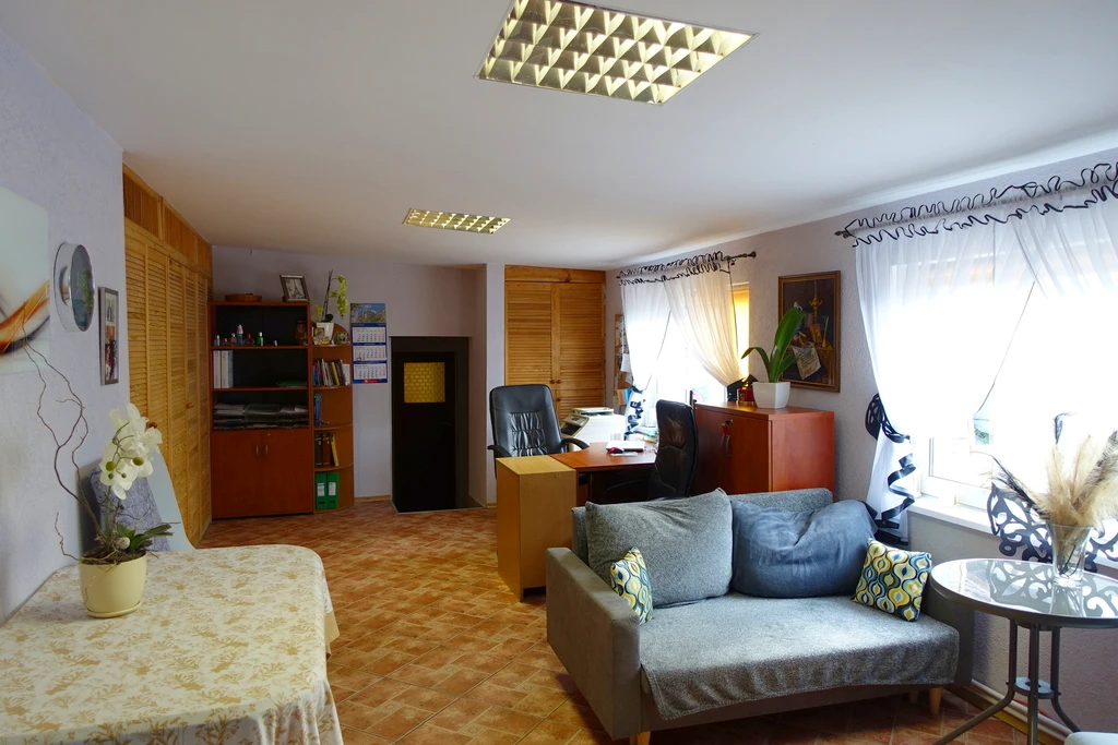 Diese großzügige Liegenschaft in Tanowo bietet eine seltene Kombination aus Produktions-, Lager-, Büro- und Wohnflächen. Mit einer Gesamtfläche von etwa 947 m² auf einem 3.656 m² großen Grundstück eignet sich das Anwesen ideal für Unternehmer, die Arbeiten und Wohnen an einem Ort verbinden möchten.