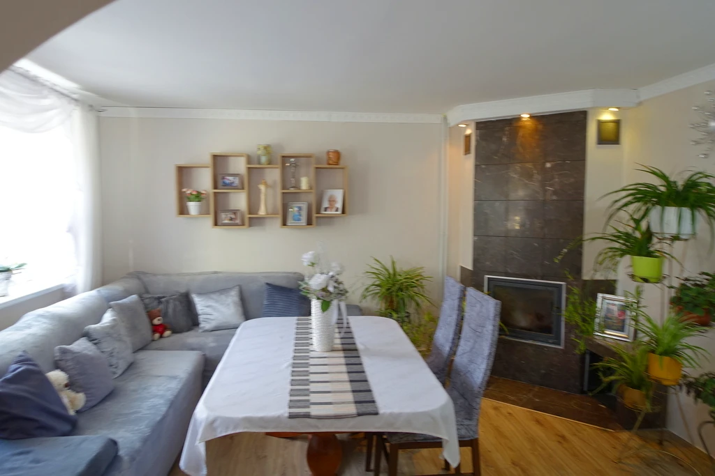 - Pierwsze zdjęcie w naszej galerii zostało lekko zmodyfikowane, aby pokazać, jak nieruchomość mogłaby wyglądać – na przykład po zmianie koloru ścian. Kolejne zdjęcia przedstawiają rzeczywisty stan nieruchomości.