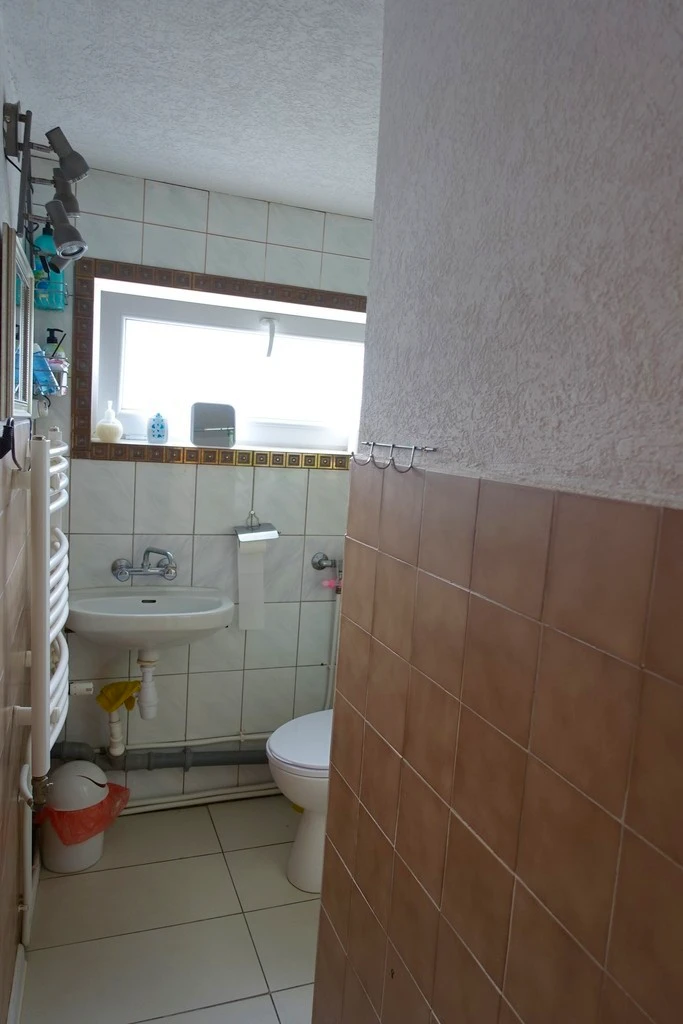 - Badezimmer mit Dusche, WC, Waschbecken, Heizkörper und Waschmaschine (6,95 m²)