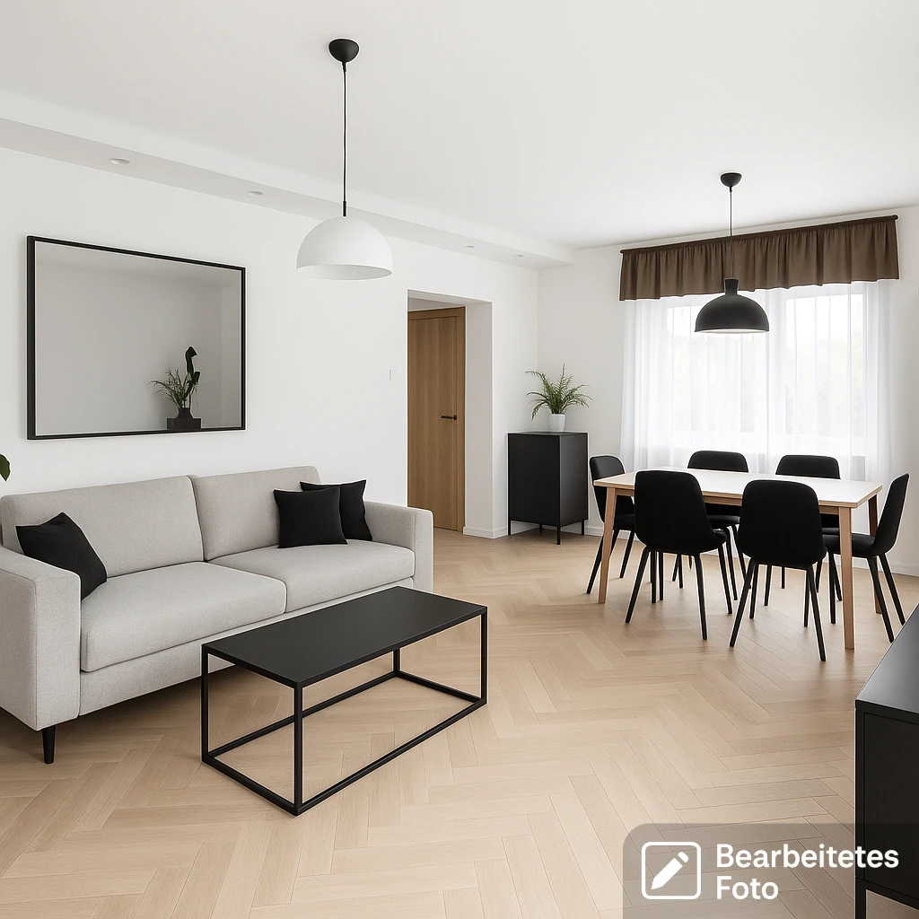 - Geschmackvolle Laminatböden in den Zimmern, glatte und gestrichene Wände und Decken.