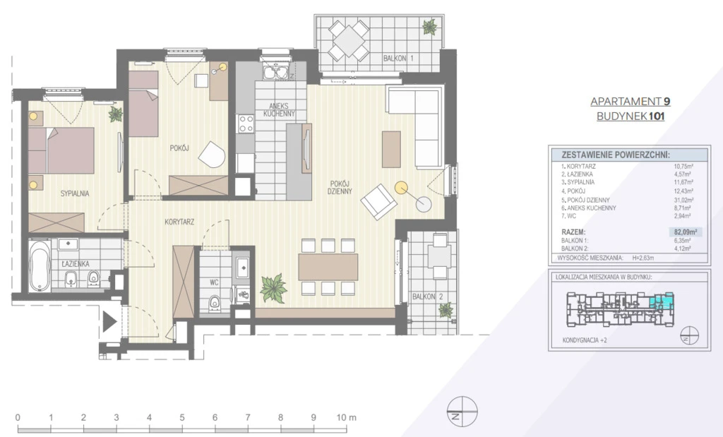 Willkommen zu Ihrem neuen Zuhause in einer der begehrtesten und grünsten Wohngegenden von Stettin – Warszewo. Diese lichtdurchflutete 3-Zimmer-Wohnung befindet sich im ersten Obergeschoss eines modernen Mehrfamilienhauses innerhalb eines eleganten, ruhig gelegenen Wohnensembles. Die Wohnfläche von 82,09 m² bietet durchdachte Raumaufteilung, zwei großzügige Balkone und wurde mit viel Liebe zum Detail hochwertig ausgebaut.