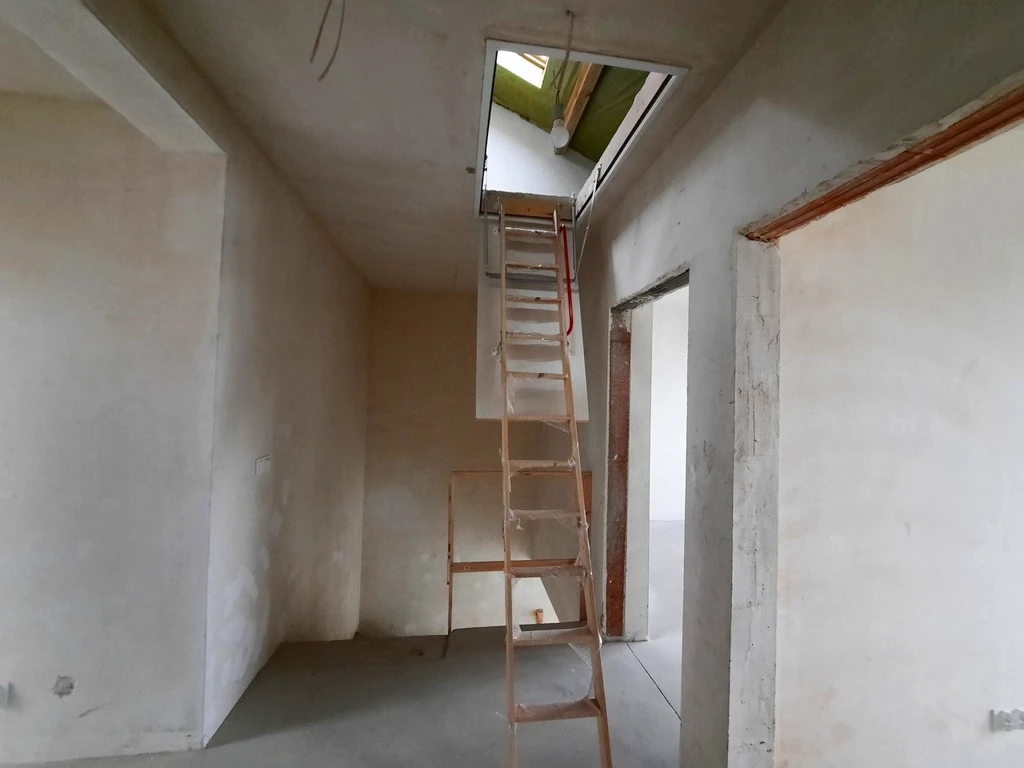Das Haus wurde mit hochwertigen Materialien erbaut, u. a. mit keramischen Ziegeln und einer robusten Betondachziegeleindeckung. Alle Anschlüsse – Strom und Gas – sind vorhanden, was den zukünftigen Ausbau und Bezug deutlich erleichtert.