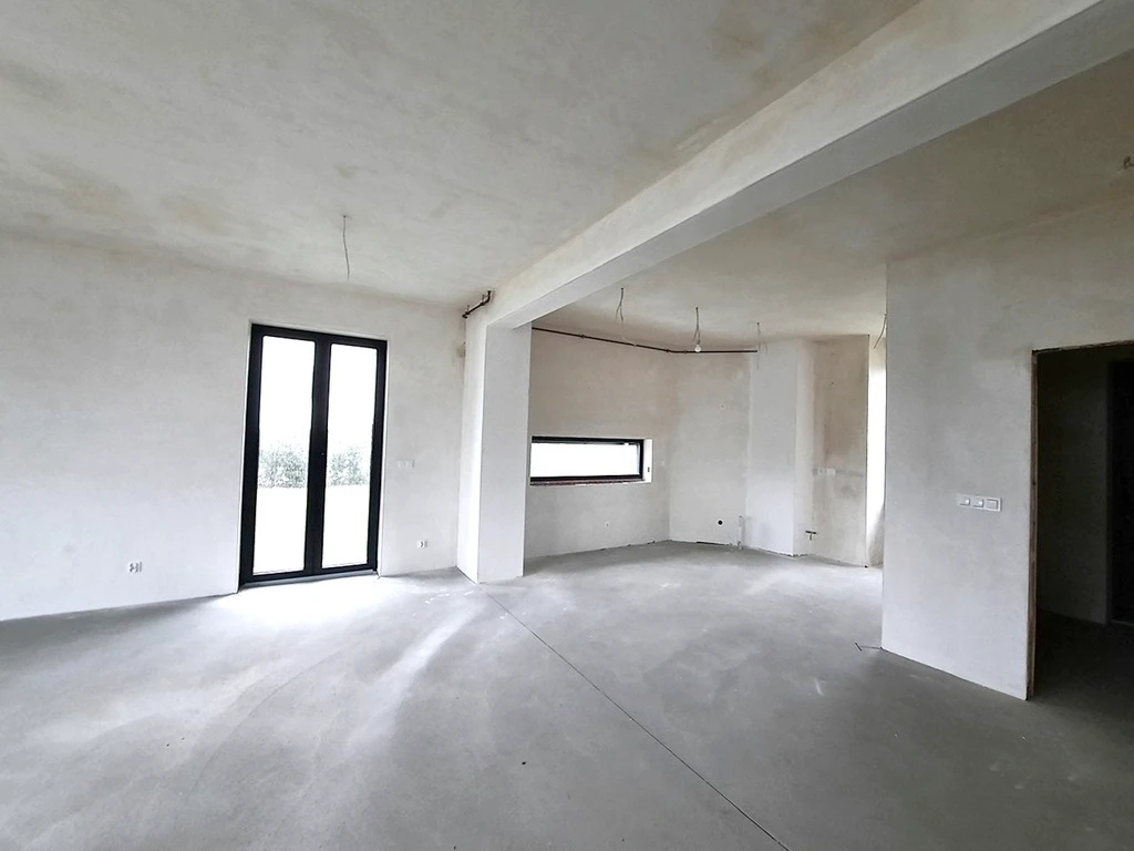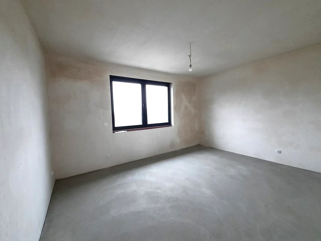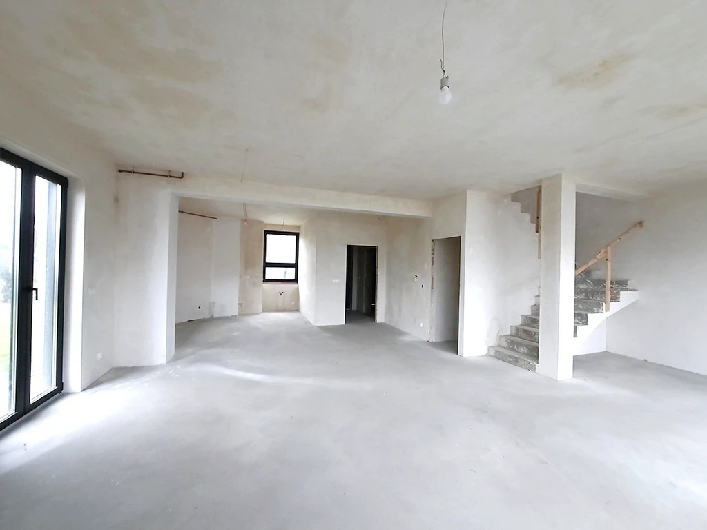 Das Haus wurde in massiver Ziegelbauweise (Porotherm) errichtet, mit 15 cm Wärmedämmung isoliert und verfügt über doppelte Trennwände zu den Nachbarhäusern. Das Satteldach ist mit Betondachziegeln gedeckt. Große Aluminiumfenster sorgen für viel Licht, besonders im Wohnzimmer, das mit elektrischen Außenjalousien und einer Schiebetür zum Garten ausgestattet ist.