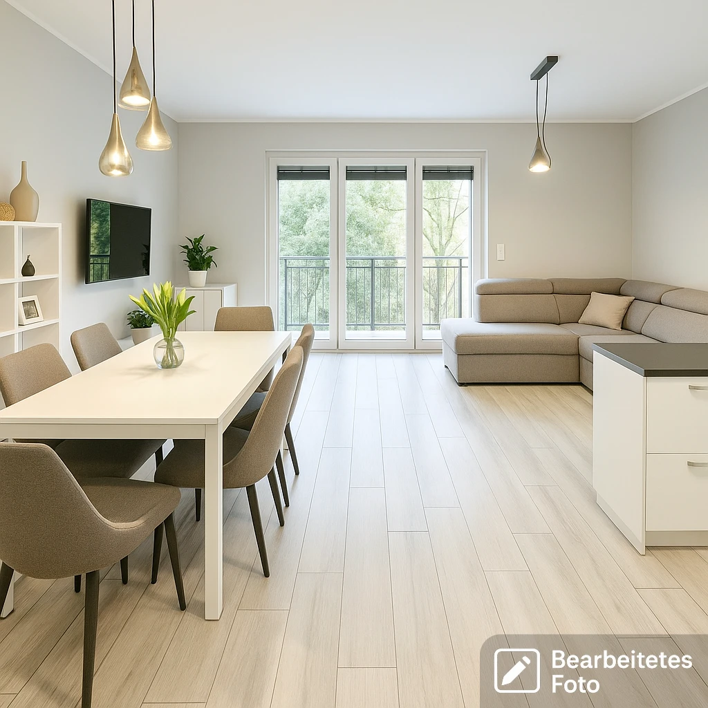 Die im Kaufpreis enthaltene, moderne Einbauküche mit hochwertigen Premium-Elektrogeräten sorgt für maximalen Komfort und fügt sich harmonisch in das stilvolle Ambiente ein.