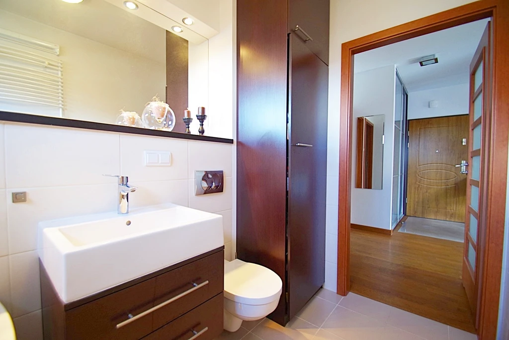 Das monatliche Hausgeld beträgt etwa €254 (PLN 1.078) und umfasst Vorauszahlungen für Heizung sowie Warm- und Kaltwasser. Eigentümer erhalten regelmäßig Rückzahlungen in Höhe von ein bis anderthalb Monatsbeträgen aufgrund geringer tatsächlicher Verbrauchskosten.