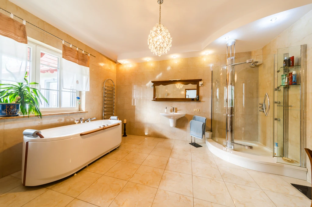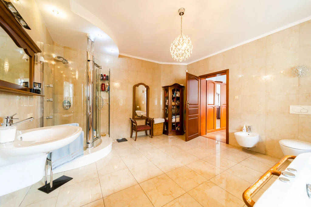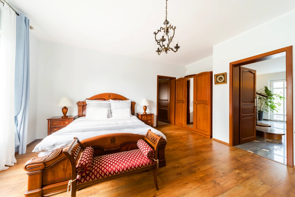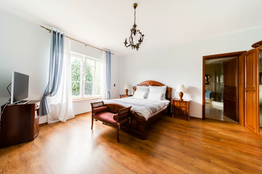 - Hauptschlafzimmer mit angrenzendem privaten Badezimmer (Badezimmer mit Whirlpool) – 21,75 m² + 17,17 m²