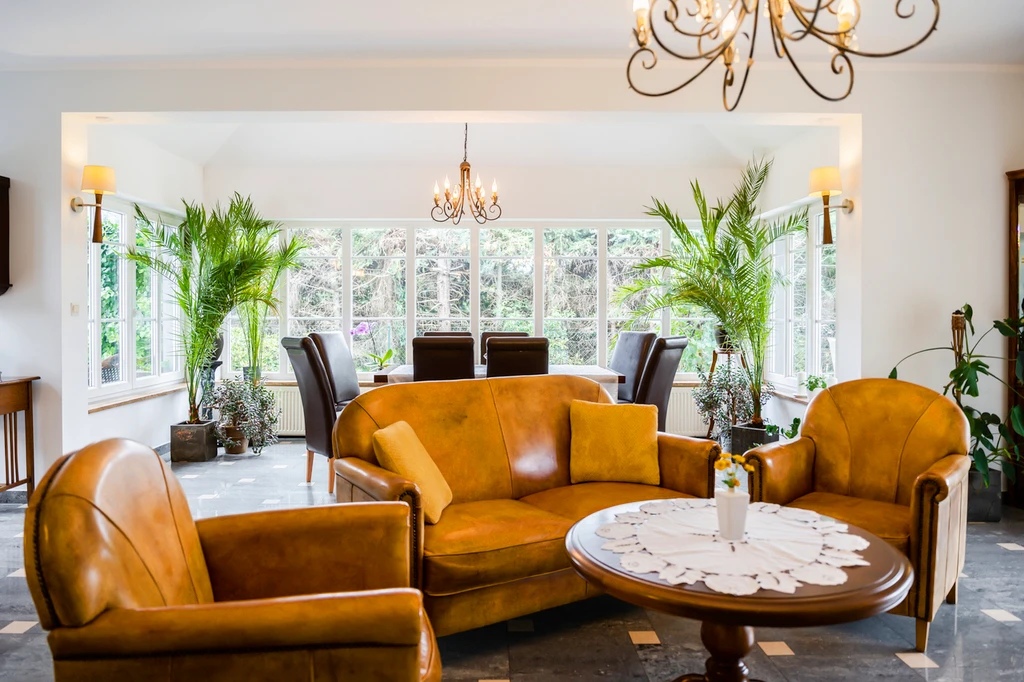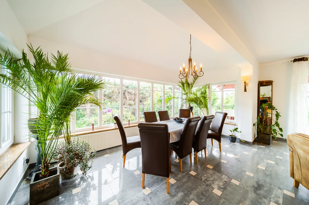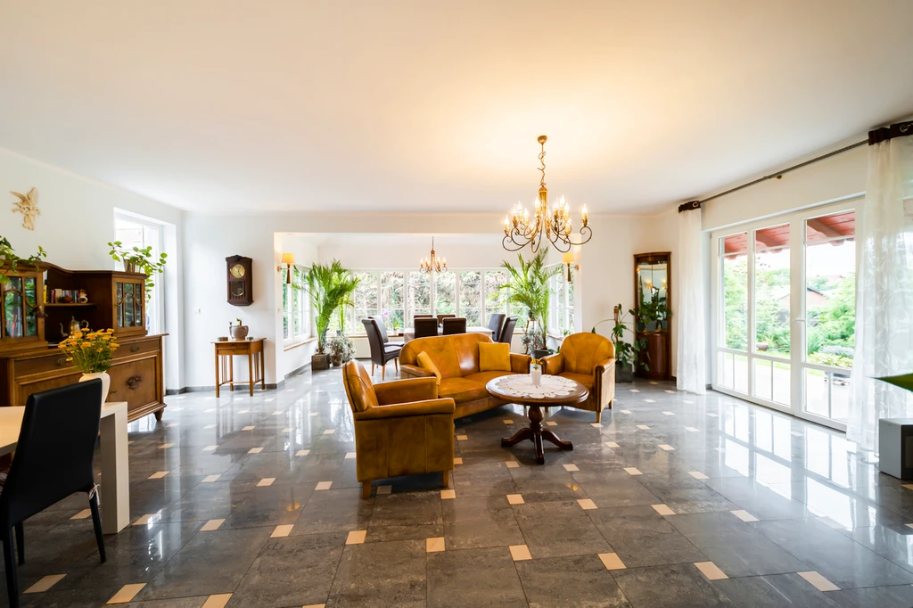- Großzügiges Wohnzimmer mit Essbereich – 45,62 m², lichtdurchflutet dank stilvoller Fenster