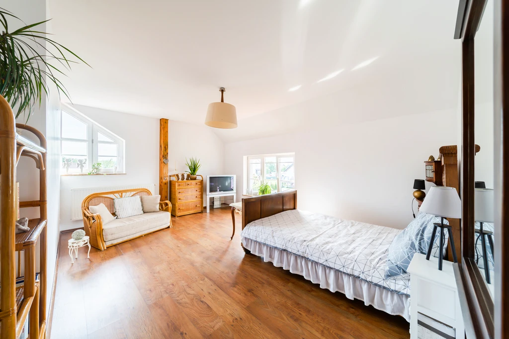 - Pierwsze zdjęcie w naszej galerii zostało lekko zmodyfikowane, aby pokazać, jak nieruchomość mogłaby wyglądać – na przykład po zmianie koloru ścian. Kolejne zdjęcia przedstawiają rzeczywisty stan nieruchomości.