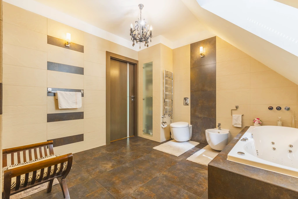 - Badezimmer mit Badewanne, Dusche, WC, Bidet und Fenster (8,4/9,3 m²)