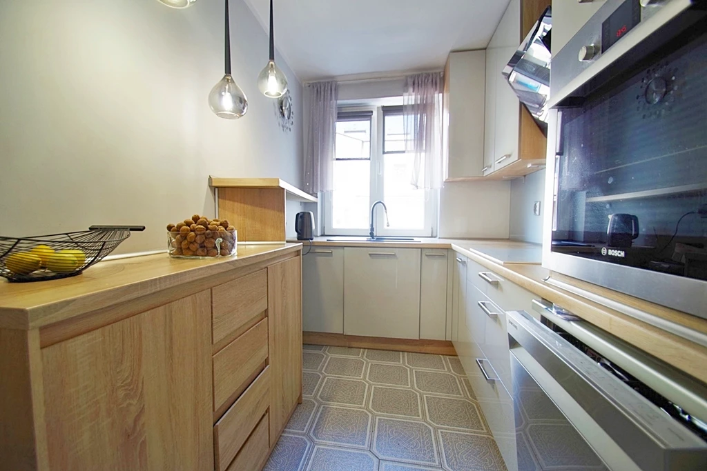 Diese gepflegte und klimatisierte 3-Zimmer-Wohnung befindet sich im Herzen von Śródmieście-Centrum und überzeugt durch ihre durchdachte Raumaufteilung sowie moderne Ausstattung. Die separate Küche bietet viel Platz zum Kochen und ist ideal für Familien oder Paare, die gerne gemeinsam kochen.