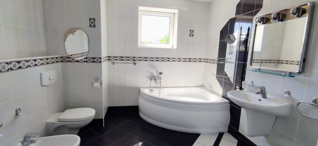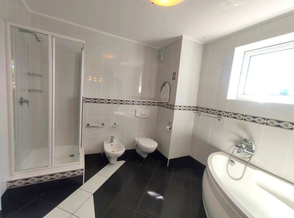 - einem großzügigen Badezimmer mit Fenster, Badewanne, Dusche, WC und Bidet