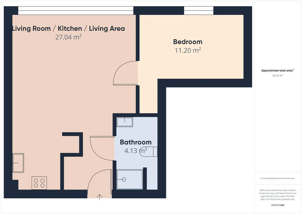 Diese neuwertige Wohnung im Erdgeschoss eines modernen Apartmenthauses aus dem Jahr 2023 bietet auf 43,40 m² komfortables Wohnen in idealem Zustand. Die helle Kochnische ist vollständig ausgestattet mit Kühlschrank, Backofen, Geschirrspüler und bietet einen offenen Wohncharakter.