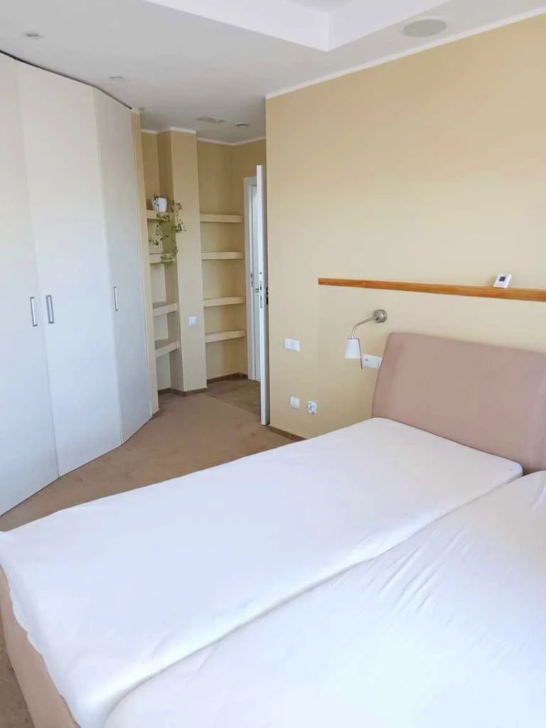 - Loggia (12 m²), zugänglich sowohl vom Schlafzimmer als auch vom Spa-Bereich
