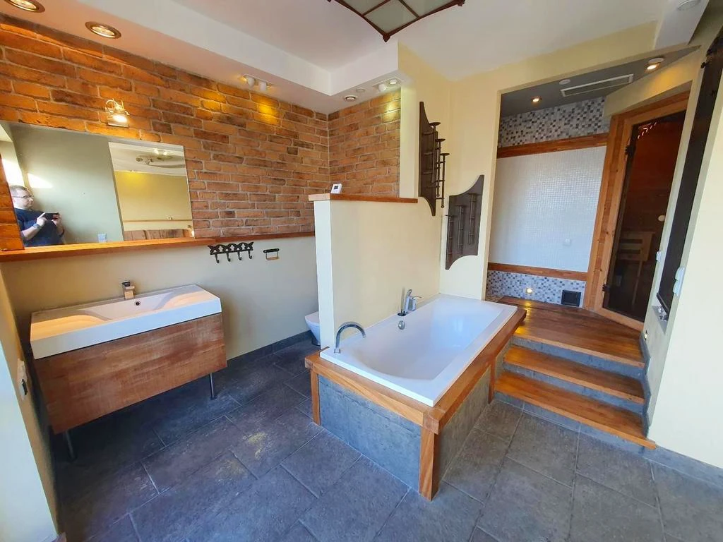 - Bäder: Edler Naturstein, exotische Holzverkleidungen, italienische und spanische Fliesen