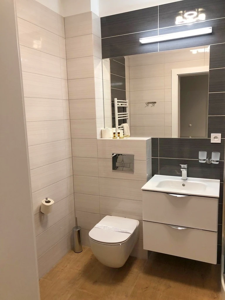 Diese charmante 2-Zimmer-Wohnung mit einem ca. 14 m² großen Balkon befindet sich in einem malerischen Badeort an der Ostsee, nur etwa 200 Meter vom Strandzugang entfernt. In einer Entfernung von ca. 1,4 km liegt das größte Küstenhotel der Region – „Gołębiewski“ – das zahlreiche Attraktionen wie Schwimmbäder, SPA, Beach Bars, Bowling und mehr bietet. Die Wohnung ist südöstlich ausgerichtet und bietet einen herrlichen Blick auf den Kiefernwald – ideal zur Erholung und Entspannung.