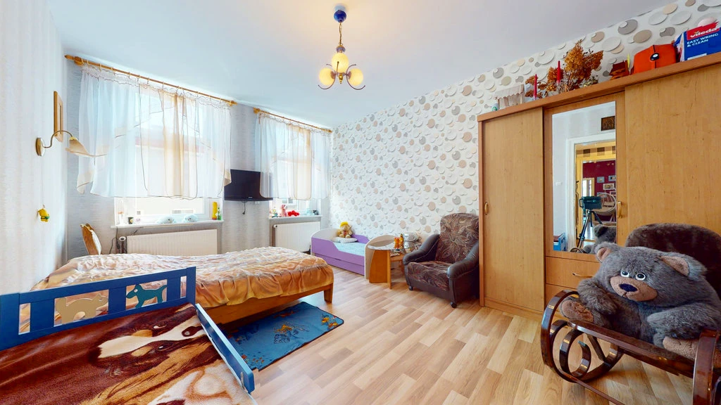 - Pierwsze zdjęcie w naszej galerii zostało lekko zmodyfikowane, aby pokazać, jak nieruchomość mogłaby wyglądać – na przykład po zmianie koloru ścian. Kolejne zdjęcia przedstawiają rzeczywisty stan nieruchomości.