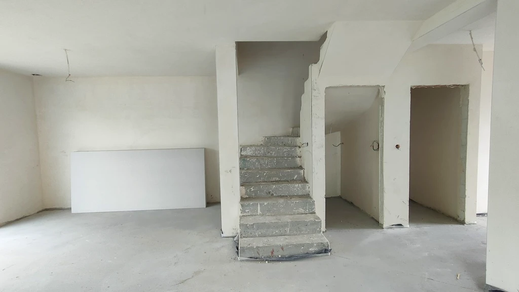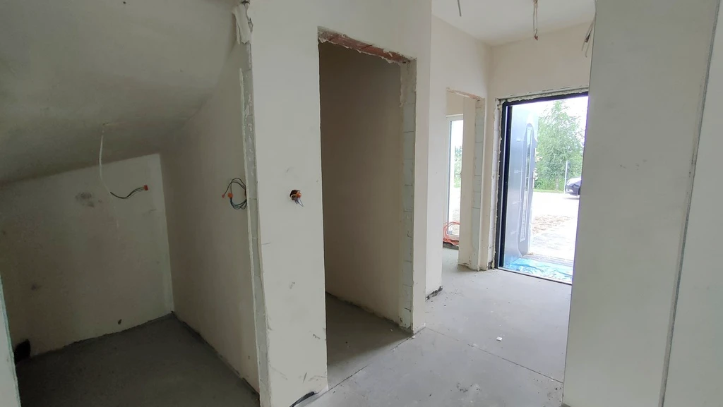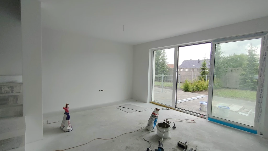 Das Grundstück misst ca. 350 m² und ist bereits von drei Seiten mit einem Zaun eingefasst. Vor dem Gebäude besteht die Möglichkeit zum Parken. Die bauliche Ausführung überzeugt mit sehr guten thermischen Eigenschaften, darunter moderne dreifachverglaste PVC-Fenster und eine fortschrittliche Bauweise mit wärmedämmendem Porenbeton. Zusätzlich sorgt eine Isolierschicht zwischen beiden Haushälften für optimalen Schallschutz. Im Erdgeschoss besteht die Möglichkeit zum Anschluss eines Kamins.