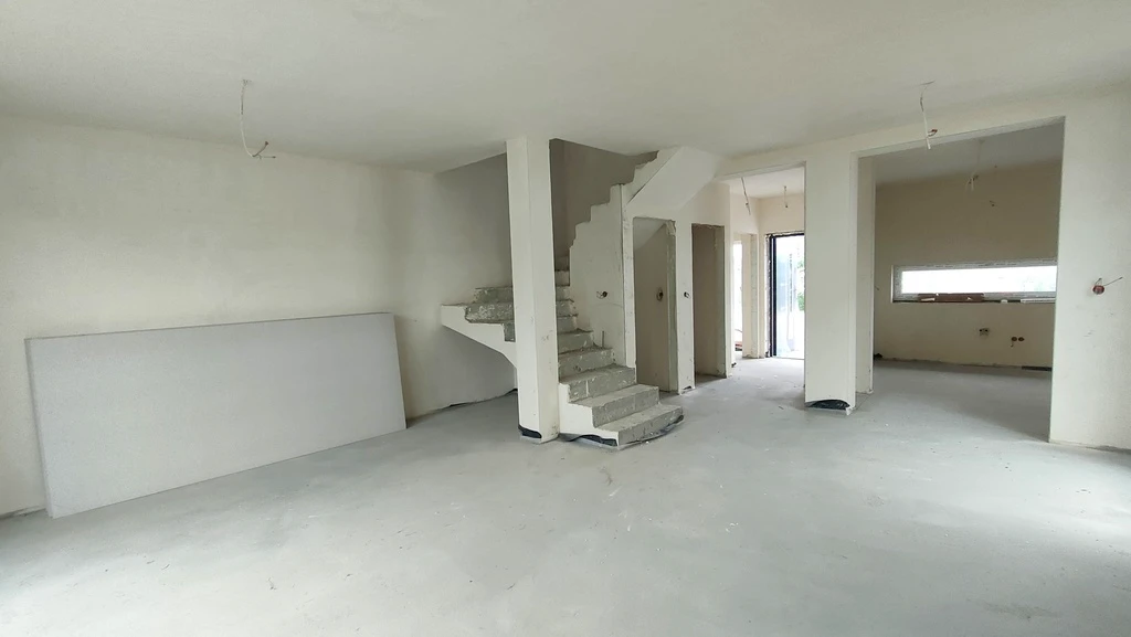 Diese moderne, lichtdurchflutete Doppelhaushälfte mit einer Gesamtfläche von 103,8 m² bietet ein komfortables Wohnen in naturnaher Lage und mit sehr guter Verkehrsanbindung. Die asphaltierte und beleuchtete Straße führt direkt zum Grundstück. Die Umgebung zeichnet sich durch saubere Luft, offene Grünflächen und ein ruhiges Wohnviertel mit freistehenden Häusern und gelegentlicher Doppelhausbebauung aus.