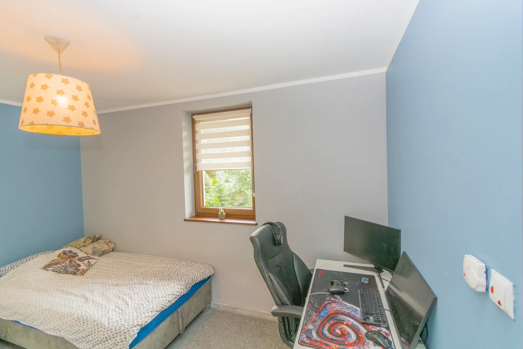 - Pierwsze zdjęcie w naszej galerii zostało lekko zmodyfikowane, aby pokazać, jak nieruchomość mogłaby wyglądać – na przykład po zmianie koloru ścian. Kolejne zdjęcia przedstawiają rzeczywisty stan nieruchomości.