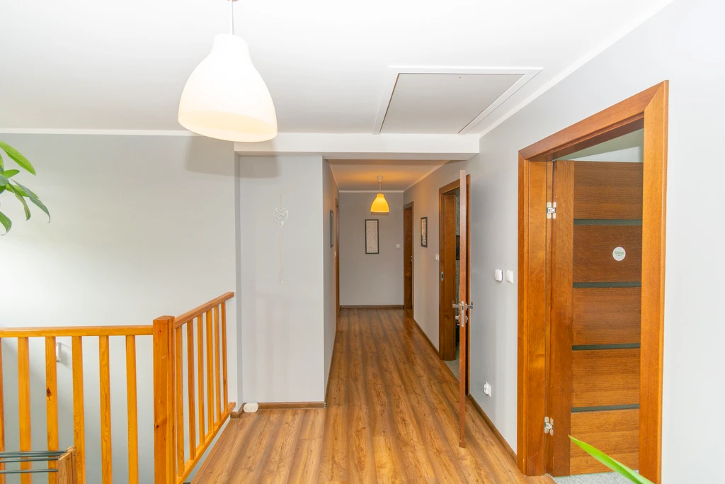 Das Obergeschoss beherbergt komfortable Schlafzimmer sowie zwei stilvoll gestaltete Badezimmer. Perfekt für eine Familie, die Wert auf Ruhe und Funktionalität legt.