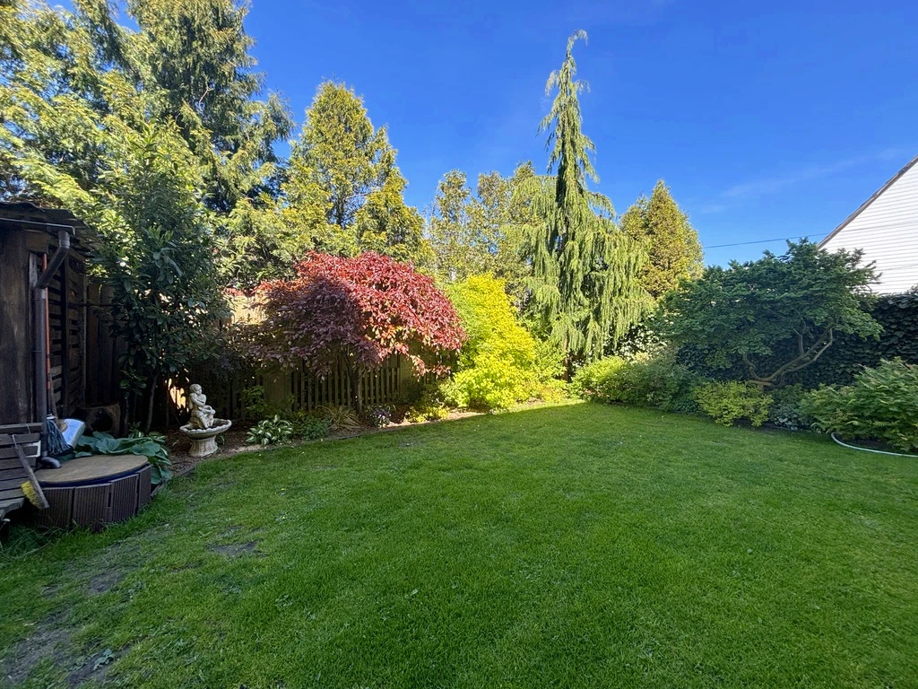 Der komplett eingefriedete Garten ist liebevoll angelegt und bietet Platz zum Entspannen oder für gemeinsame Aktivitäten im Freien. Hier finden Kinder ebenso Raum zum Spielen wie Gartenliebhaber zur persönlichen Gestaltung.