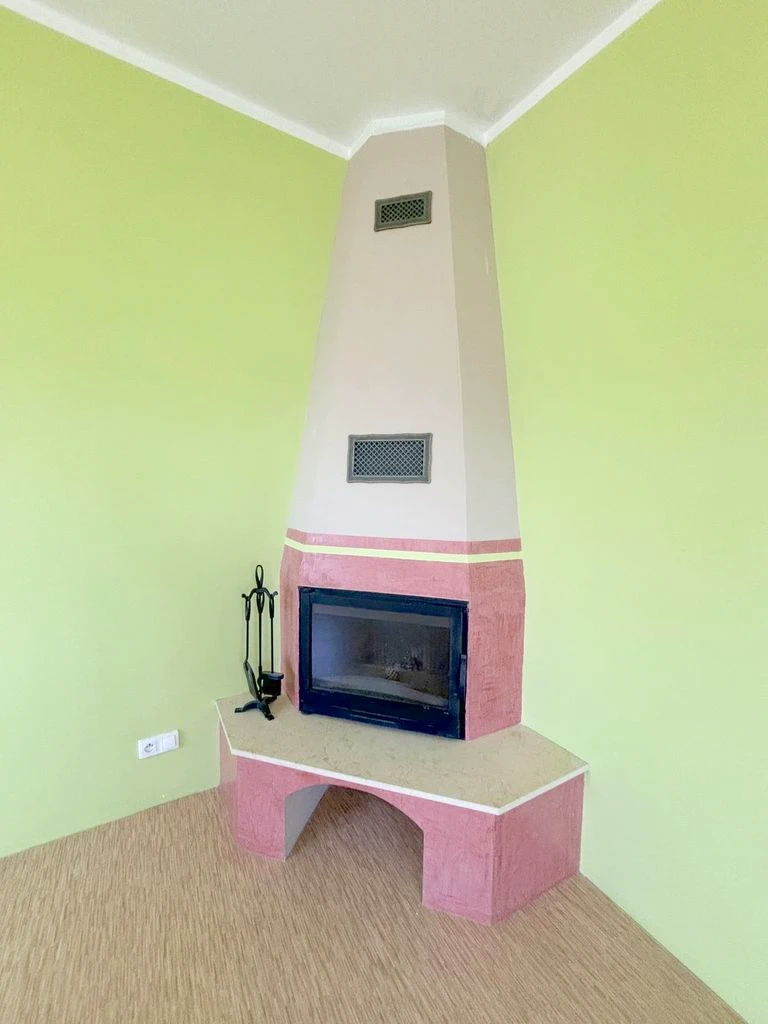 1. Obergeschoss: - großzügiges Wohnzimmer mit Kamin und Zugang zu einer weitläufigen Terrasse - 3 Schlafzimmer - separate Küche mit Fenster - Badezimmer - zusätzliches WC