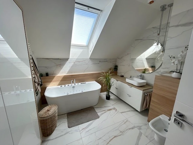 Das Haus wird über eine effiziente Gaszentralheizung mit großem Warmwasserspeicher beheizt. Alle Badezimmer wurden vollständig renoviert und präsentieren sich in zeitgemäßem Design.