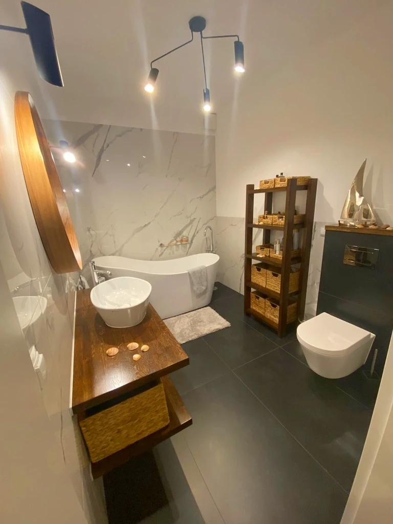 - Zwei moderne Badezimmer im zeitgemäßen Stil,