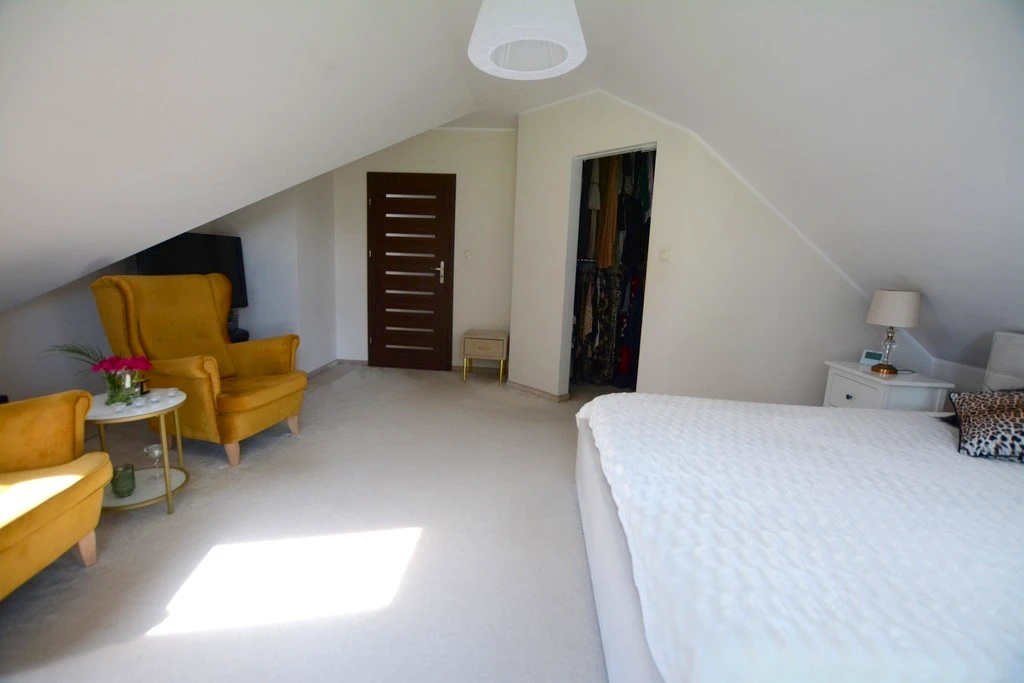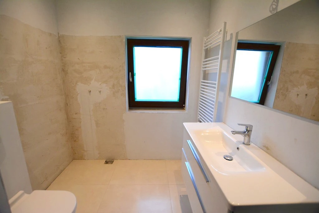 Dachgeschoss (reelle Bodenfläche in Klammern): - Hauptschlafzimmer – ca. 15,4 m² (25 m²) mit begehbarem Kleiderschrank – ca. 4 m² - Zimmer 1 – ca. 20 m² (24 m²) - Zimmer 2 – ca. 12 m² (14,7 m²) - Zimmer 3 – ca. 11 m² (22 m²) - Badezimmer mit WC – ca. 12 m² (zur freien Gestaltung) - Zusätzliches Badezimmer mit WC – ca. 8 m²