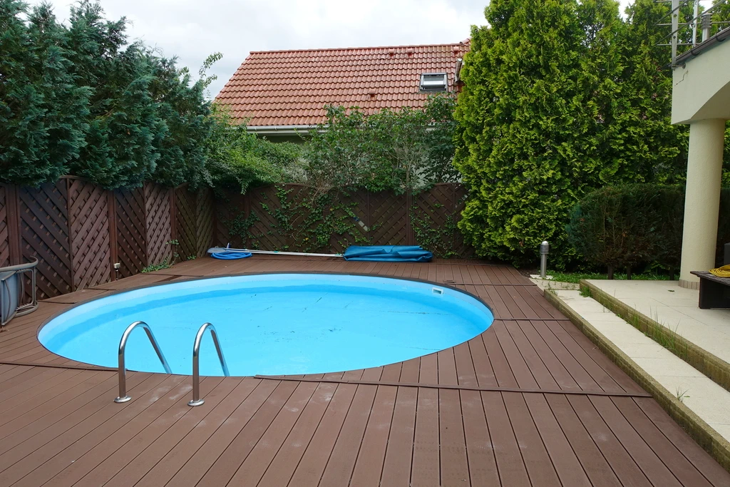 Der wunderschön angelegte Garten bietet viel Raum zur Erholung. Für gesellige Stunden mit Familie oder Freunden stehen eine überdachte Gartenlaube, ein eigener Grillplatz sowie ein runder Pool (5,5 m Durchmesser) mit beheiztem Wasser zur Verfügung. Der gepflasterte Vorplatz sowie das elektrische Einfahrtstor runden das gepflegte Erscheinungsbild ab.