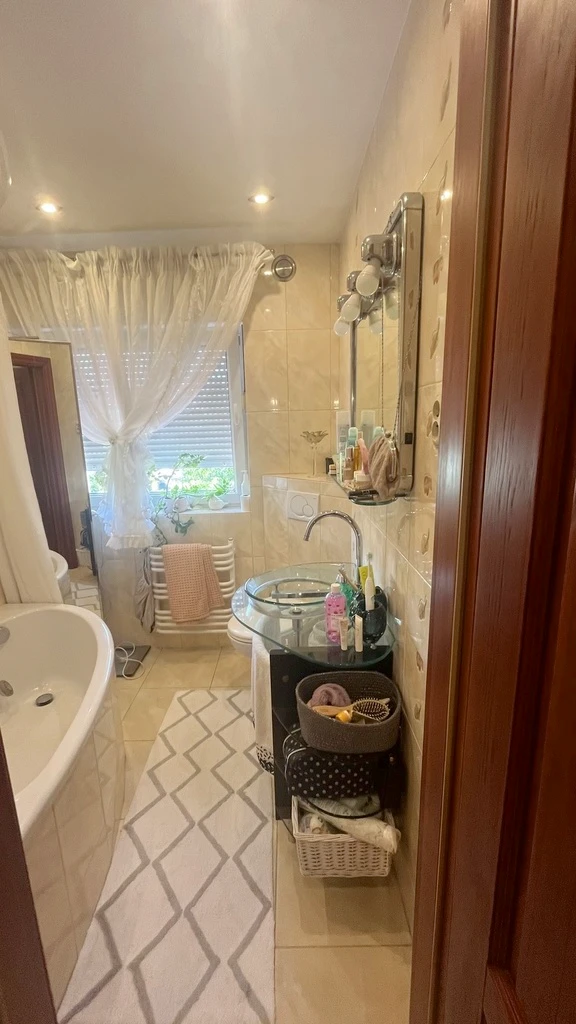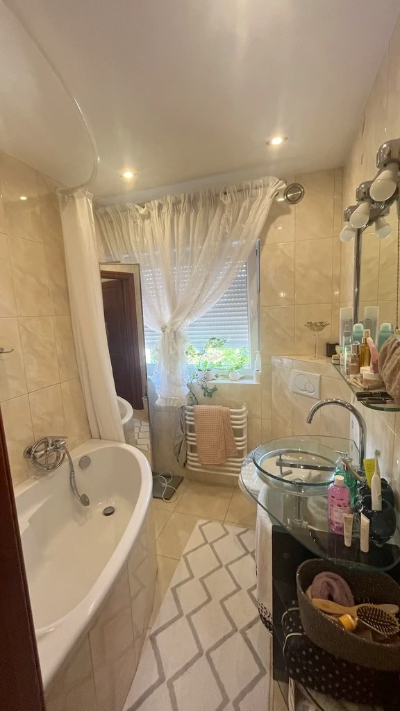 Zwei Schlafzimmer und ein Tageslichtbad mit Eckbadewanne und WC. Die Ausstattung ist geschmackvoll und funktional zugleich.