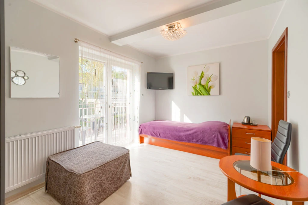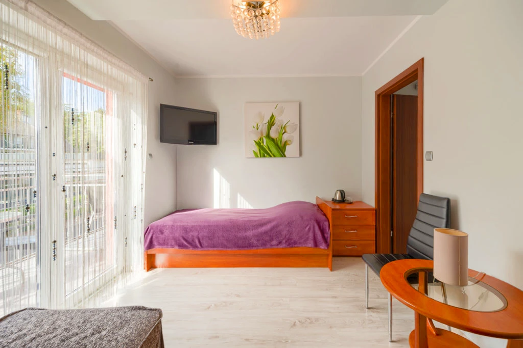 - Pierwsze zdjęcie w naszej galerii zostało lekko zmodyfikowane, aby pokazać, jak nieruchomość mogłaby wyglądać – na przykład po zmianie koloru ścian. Kolejne zdjęcia przedstawiają rzeczywisty stan nieruchomości.