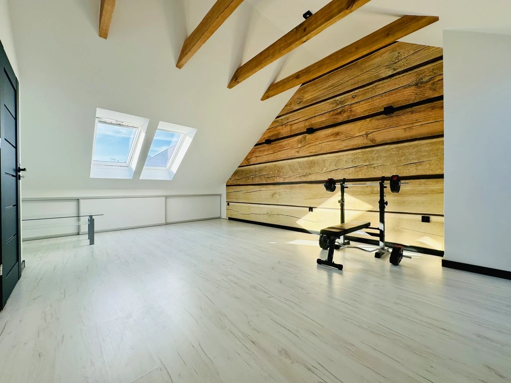 - Großzügiger, offener Raum mit viel Tageslicht, Einbauschränken in den Dachschrägen und zusätzlichem Stauraum