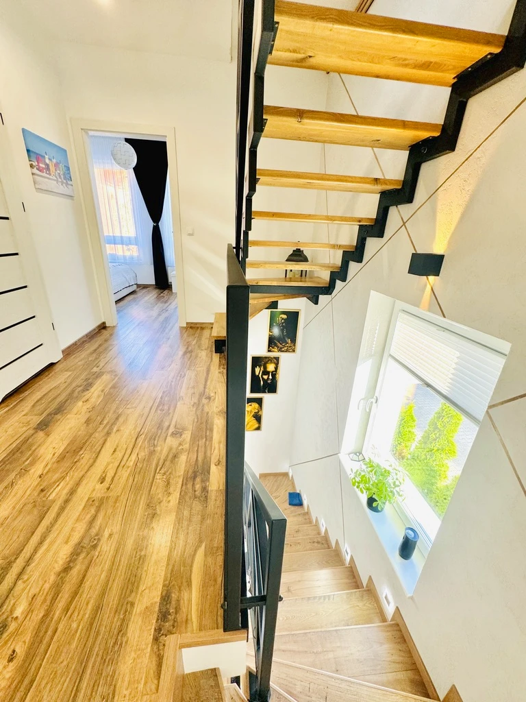 Zum Verkauf steht ein modernes Reihenendhaus mit einer Gesamtfläche von ca. 135 m² (gemäß Grundbuch ca. 103 m² Wohnfläche), gelegen im beliebten Stadtteil Bukowo. Das im Jahr 2019 errichtete Haus bietet komfortables Wohnen auf drei Ebenen und verfügt über eine Garage im Haus mit einer Fläche von ca. 16 m².