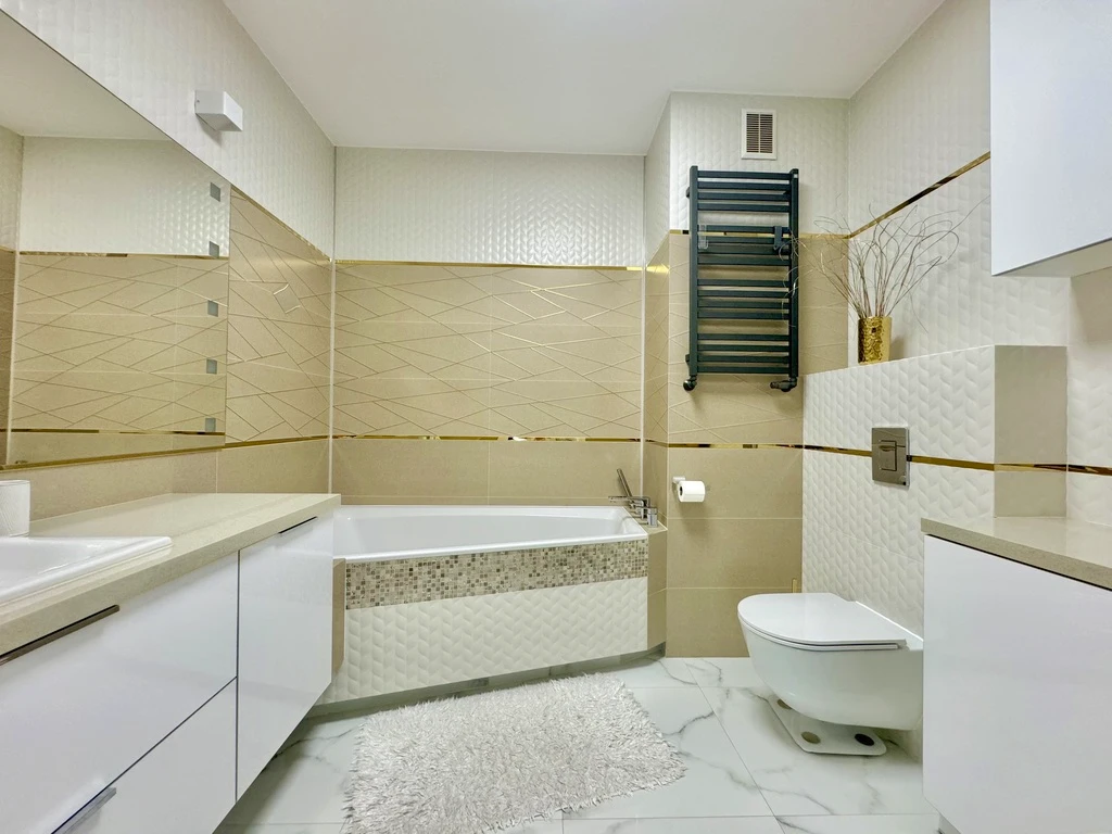 - Ausstattung: Badewanne, Waschbecken, Waschmaschine, WC, Handtuchheizkörper
